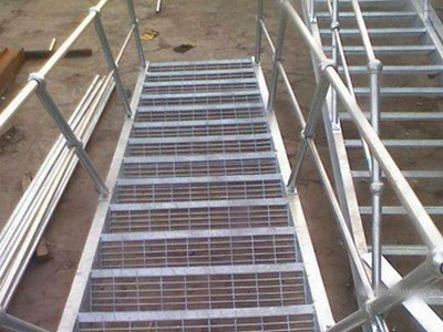 (1)根據踏步板安裝情況分為焊接固定的踏步板和螺栓固定的踏步板。其中焊接固定的踏步板即一般鋼格板,螺栓固定的踏步板需要給鋼格板加上65x5mm的扁鋼作為側板。